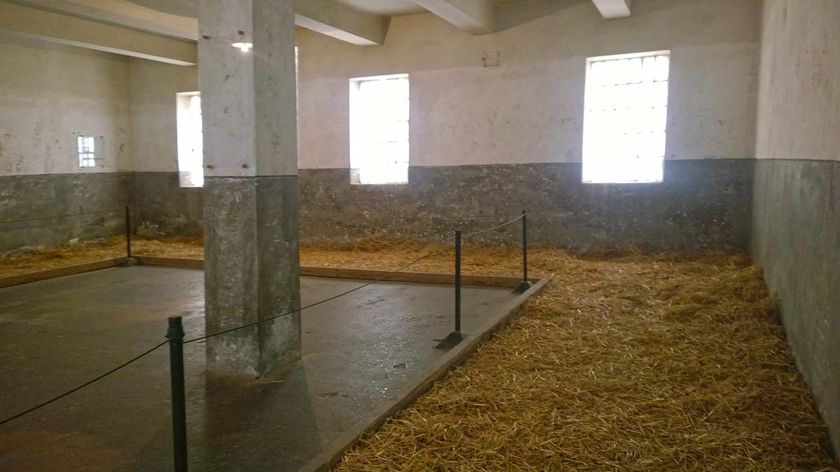 While we were walking inside the main building our tour guide showed us the windows painted with ugly brown color – Nazi’s way to prevent prisoners to see what is happening outside in the yard. We saw one of the sleeping rooms, preserved exactly as it was when the camp operated and I still get goosebumps remembering the barn-like settlement inside, where 50 to 150 hostages had to find a way to rest at night.