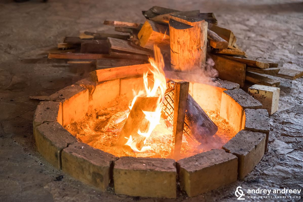 We rushed out of the minivan, grabbed our backpacks and ran to the open space restaurant. The scene before us was undoubtedly gorgeous despite the bad weather: large green meadow, little wooden houses, camp fire under the restaurant’s roof. With some imagination I could even see the mountain peaks in the distance. The taste of adventure in my mouth was getting more intense by the second.
