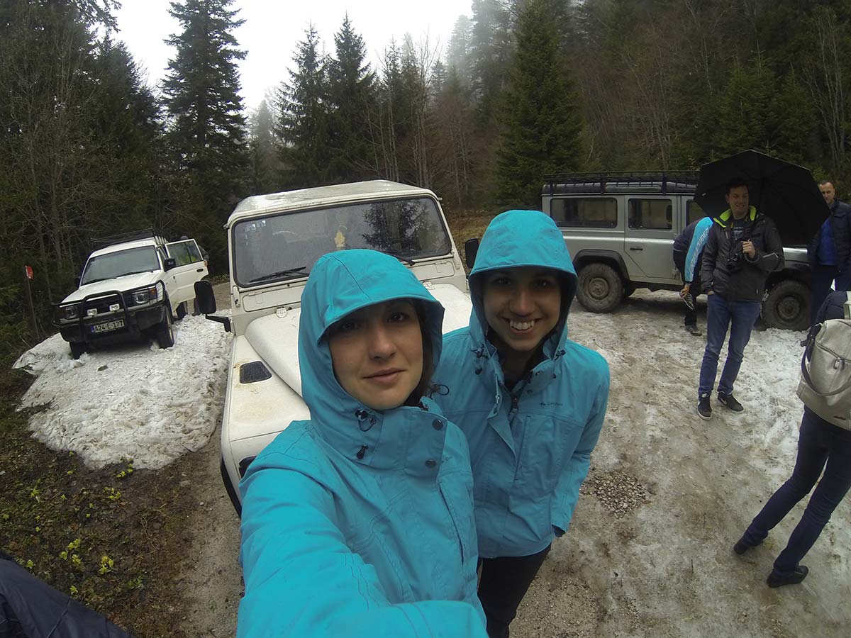 Bosnia was nice to us for just a day. As we woke up the morning after rafting day heavy clouds were gathered above us, nastily boiling from within. We knew it was going to be a cold, rainy day yet neither one of us bothered to use a single brain cell when asked if we were going to join the mountain safari with jeeps.
