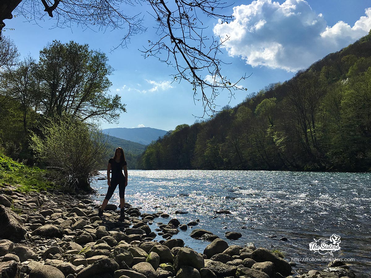 It was also time to be childish. We took our shoes off and ran barefoot on the moisty lawn, happy and free as kids. We then rushed down to greet the river which charmed with its incredible turquise nuances.